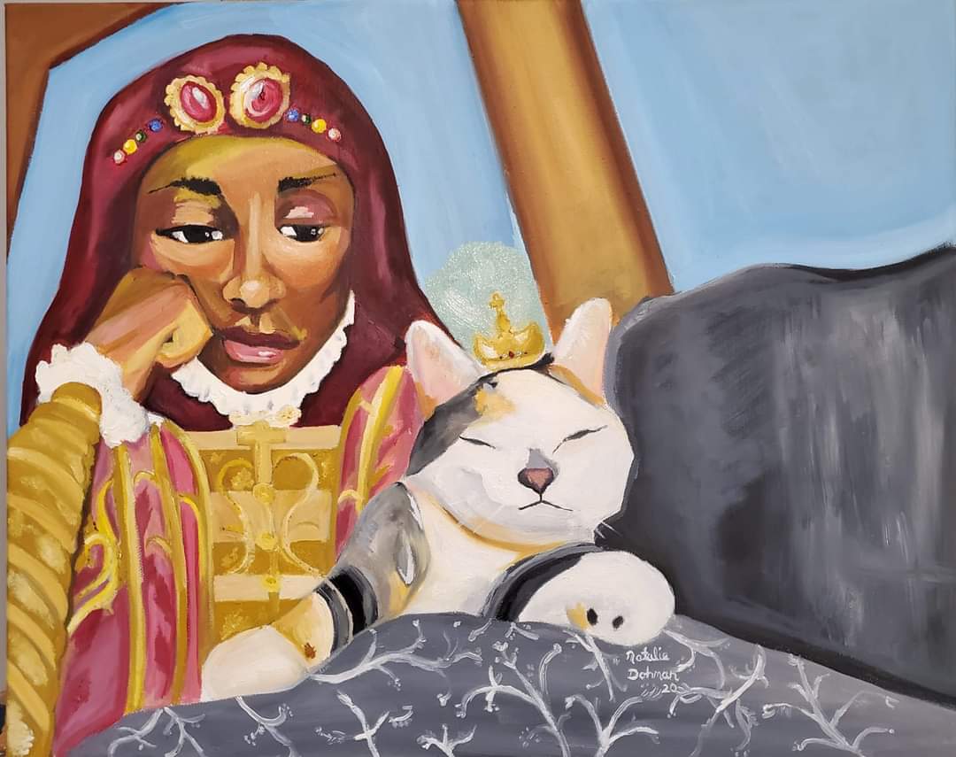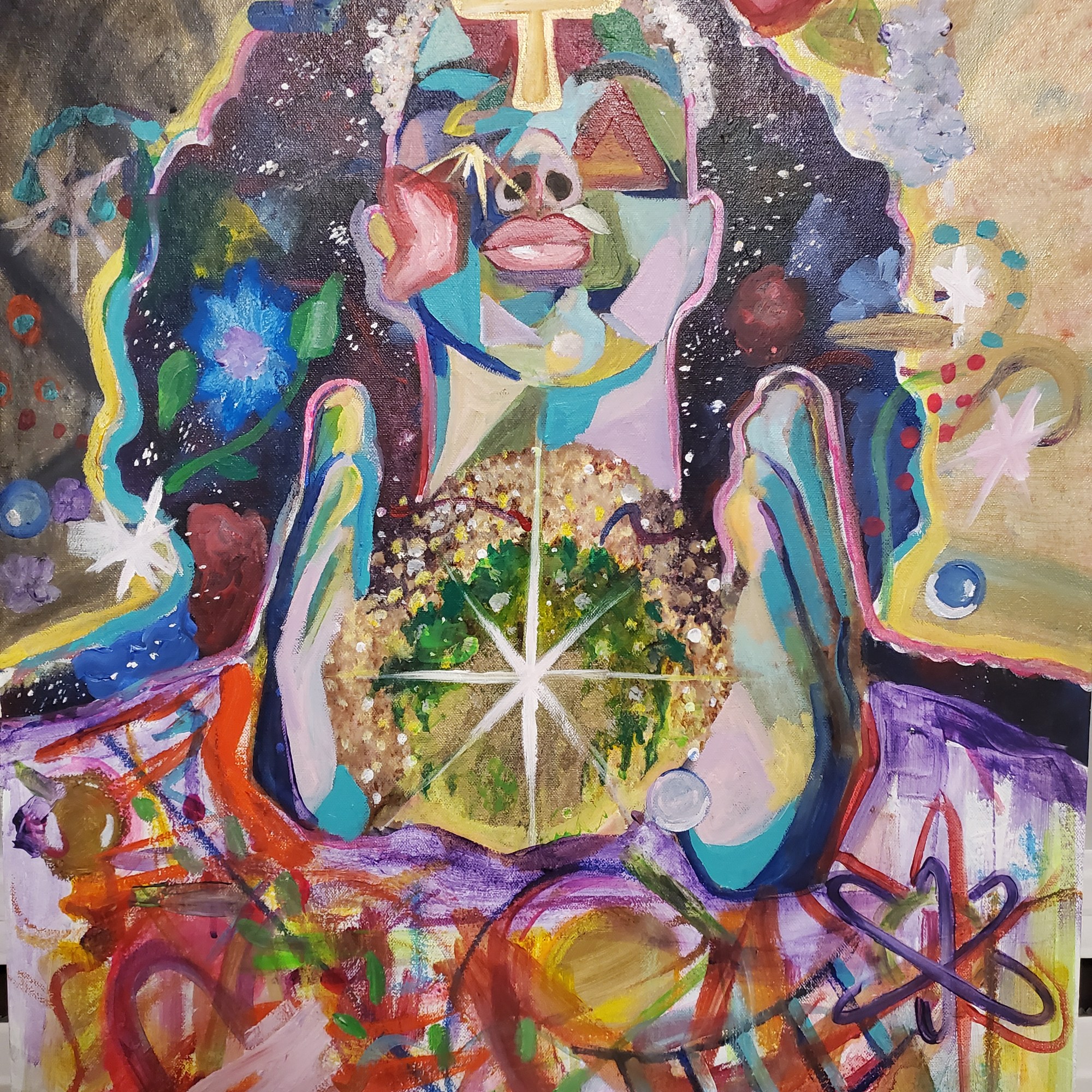 “Evolution of Spirit” is a series of works created throughout Natalie’s life. Growing up in a conservative Christian house played a role on how Natalie interpreted religion and religious figures in her life. Natalie discovered her Jewish roots at the age of 39, and her previous paintings pointed to her understanding and acceptance of prominent religious figures and how they impacted her life, spiritually, from when she was a child and how she envisioned them and experienced them.